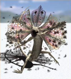 Este lagarto pequeno de 2 pés de comprimento é a evolução do lagarto-dragão australiano, um tipo de réptil ancestral assim chamado por possuir uma crista ao redor do pescoço, que abre quando tem fome ou medo.