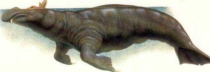 As pernas traseiras se aplainaram e se fundiram, formando um leme tal como nos pinípedes modernos.
